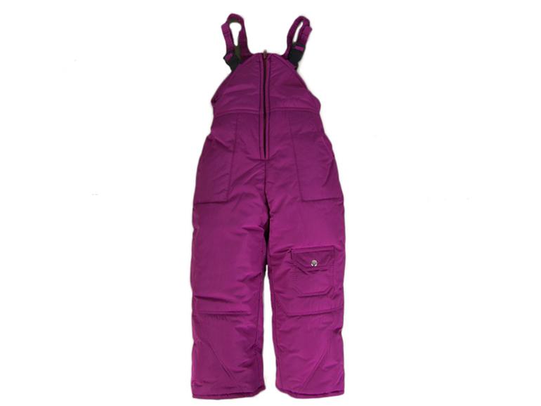 Зимний полукомбинезон. Верх выполнен из плащевки, утеплен синтепоном. Резинка сзади на талии обеспечивает плотное прилегание комбинезона для большей сохранности тепла. Застежка-молния на груди. По бокам есть кармашки. Внизу предусмотрена резинка на ботинок от попадания снега. Регулирующиеся бретели. Подворот брючек возможен на 12 см.