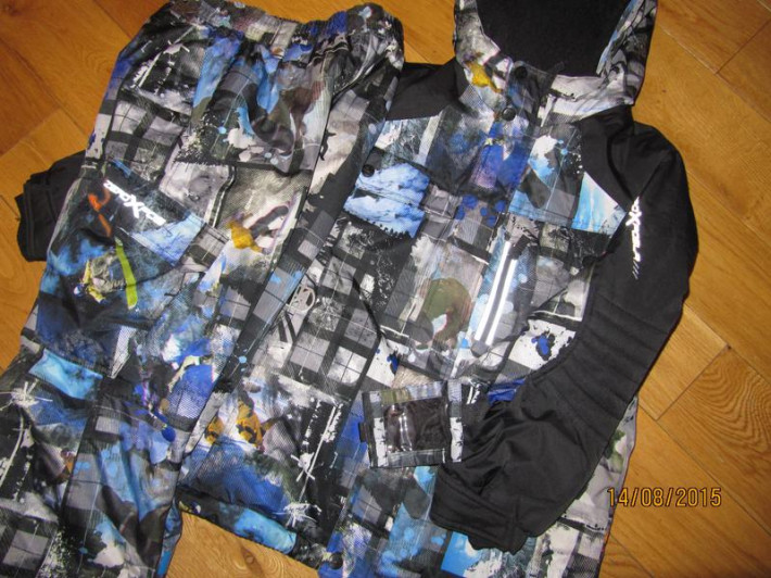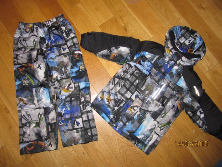Куча карманов, на спинке термовставка и доп.утепление мехом, в -22 не замерзали даже при не активном гуляние.Всё как положено есть, защита от снега на штанах и куртке, рукава с прорезью под палец.В рукаве есть вытаскивающийся карман, под пропуск в школу или проездной(на последнем фото)..