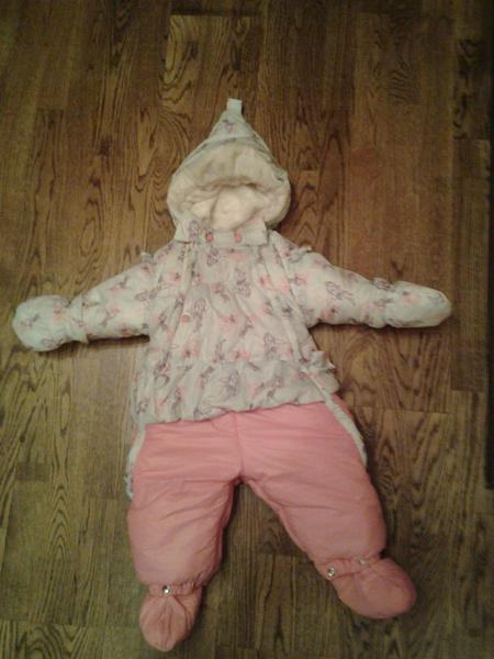 Зимний комбинезон на девочку. Теплый, красивый с подстежкой из овчины с пинетками и варюшками 68 размера, большемерит на 4 см. Носили чуть больше месяца. Варюшки в подарок