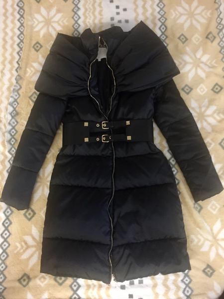 Очень красивый, плотно набит пухом, ремень кожаный шикарный, подойдёт на 40-42 российский размер, состояние идеальное, но потерялась одна собачка на замке (это единственный недочёт)
