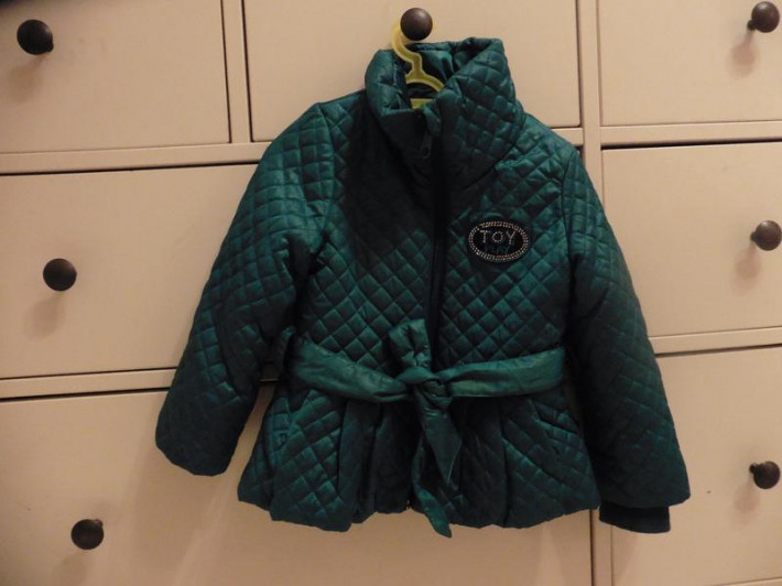 Очень красивый изумрудный цвет. Маркировка 92, но большемерит 98-104 смело. Куртка в хорошем состоянии. Не хватает двух страз на эмблеме.