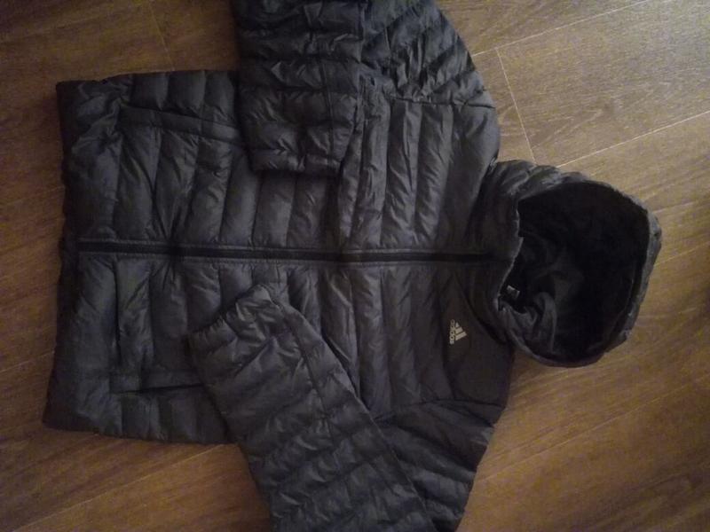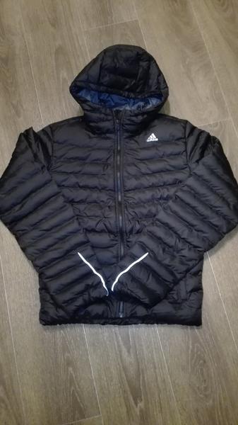 Мужской пуховик Adidas M SMU LGHT DWN, A08297. Изготовлен по технология Climaproof, обеспечивающей надежную защиту от дождя, снега и ветра. Застежка на молни, воротник-стойка, штормовой капюшон. Верх - 100% полиэстер, наполнитель - 90% гусиный пух, 10% перо. Плотность утеплителя 620-650+.