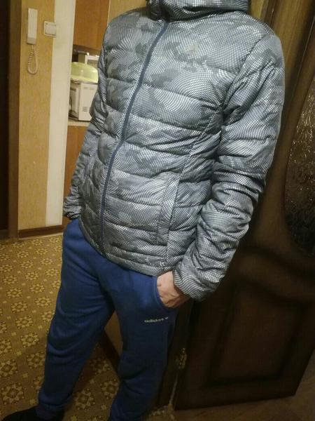 Мужской пуховик Adidas M SMU LGHT DWN, A08297. Изготовлен по технология Climaproof, обеспечивающей надежную защиту от дождя, снега и ветра. Застежка на молни, воротник-стойка, штормовой капюшон. Верх - 100% полиэстер, наполнитель - 90% гусиный пух, 10% перо. Плотность утеплителя 620-650+.