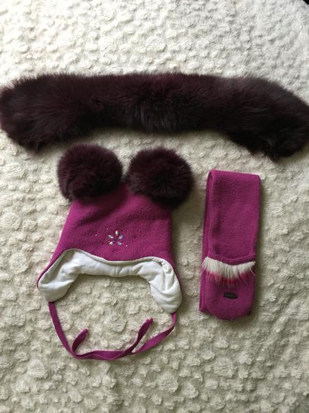 Шапочка зимняя, тёплая, внутри isosoft. Продаю в комплекте с опушкой. Цена шапка-шарф-опушка 2800р. Могу продать с родными помпонами (розовые, на чёрной шапке, фото 3), цена тогда за шапку-шарф будет 1300р.
