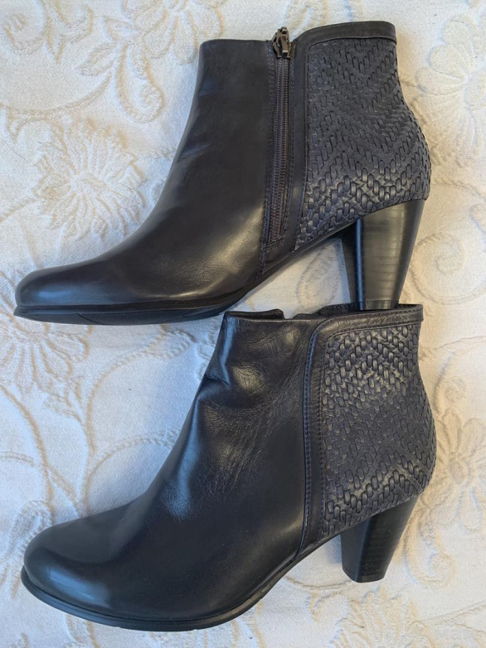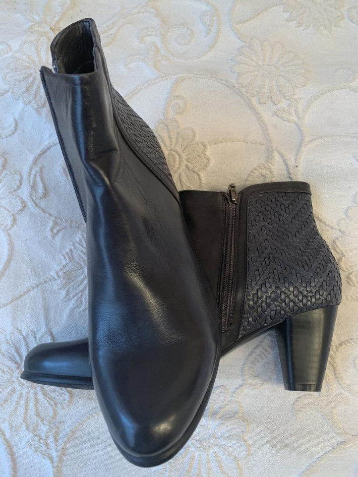 Новые полусапожки Piazza Италия 39 р,в размер, внутри небольшой утеплитель, мягкая кожа, средний удобный каблук, впереди чёрные, сзади темно-синие.