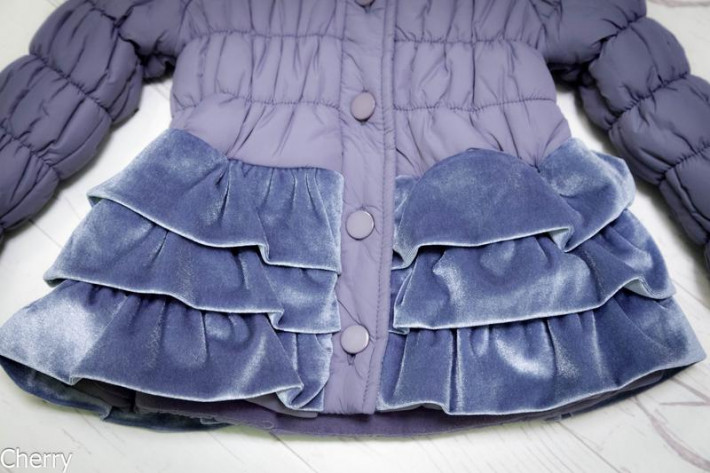 Воротничок и рюши - велюровые. Застежка - молния и пуговицы. Подкладка - хлопок.