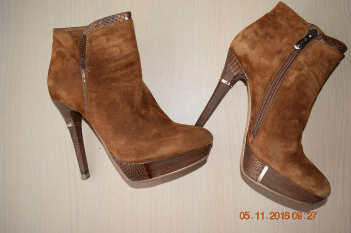 шикарные ботильоны ищут новую хозяйку, обувь б/у, удобная колодка, натуральная замша, кожа, есть дефект на каблуке, на фото видно, в остальном состояние очень хорошее