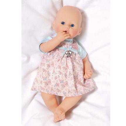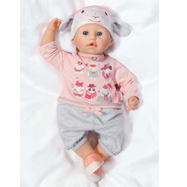 Кукла ведет себя как настоящий, живой ребенок - она капризничает и радуется, смеется и плачет в зависимости от настроения. Она также умеет пить, срыгивать и ходить на горшок. Чтобы убаюкать куклу, нужно ее покачать, и тогда она уснет. В комплект также входят бутылочка-поилка, слюнявчик, соска и погремушка. Кукла одета в прелестный розовый комбинезончик и аккуратный чепчик. Высота куклы составляет 46 см.