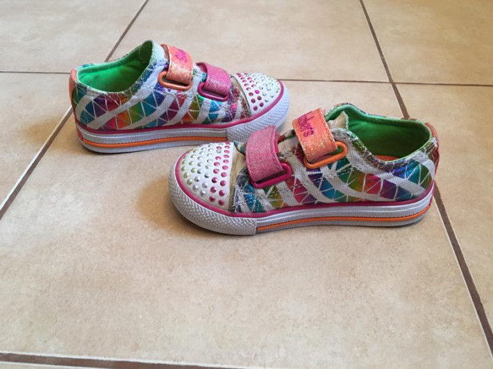Продам в хорошем состоянии фирменные кеды Skechers, есть такой нюанс как отпавшая одна стразинка, не сильно бросается в глаза, мигалки работают. По стельке точно 17 см, соответствует нашему размеру 25-26 (как всегда у этой фирмы не совсем совпадает с указанным на этикетке)