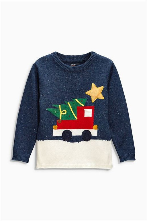 Новогодний джемпер фирмы NEXT. Синий с белым, впереди вывязана Машина и Елка. Состав 40% хлопок, 60% акрил. Размер 9-12мес(74-80), 1200руб.