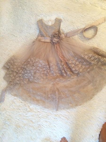 Одно из самых шикарных платьев, смотрится великолепно! Одето один раз на утренник в саду. Размер 4 года, на рост от 100 до 110 отлично! Цвет беж