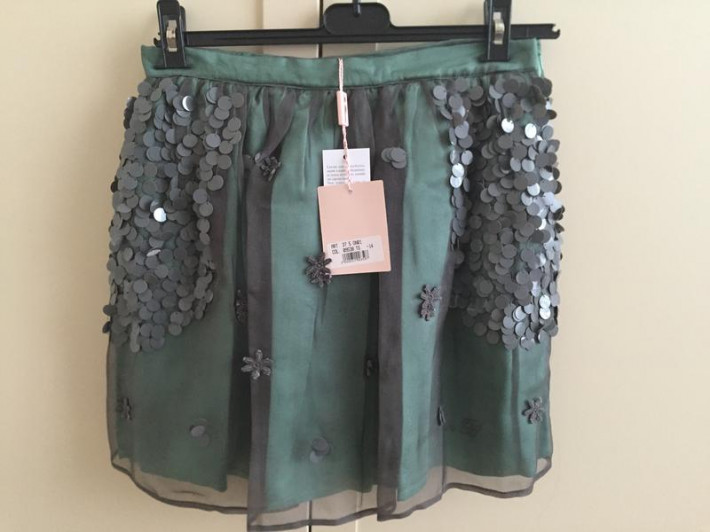 Абсолютно новая юбка blumarine, очень нарядная, трехслойная, материал шелк, маркировка 14, реально меньше, на 12(152); цена ниже закупочной.