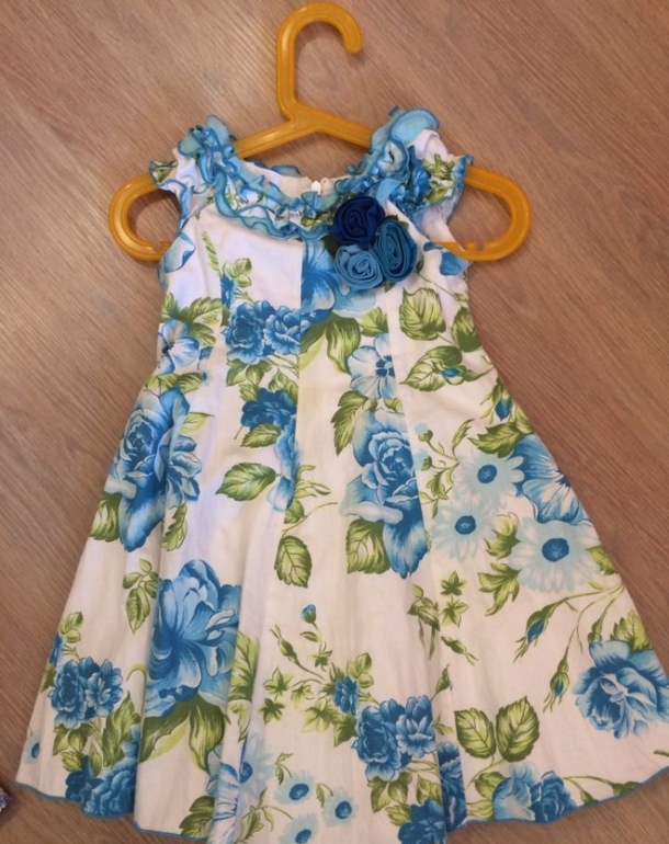 7.платье нарядное цена - 300 руб. есть пятнышко за счет пестрой расцветки в глаза не бросается