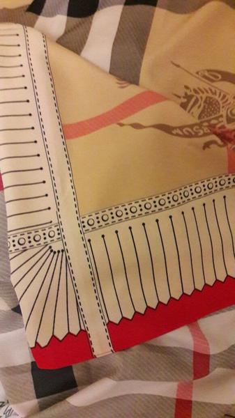заказывала у знакомой- под эрме оставила себе - под бербари продаю по цене как и купила - почта в подарок - платок очень красивый и мягкий не блестит ( может на фыото так вышло)