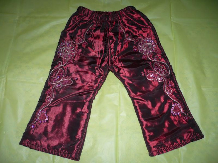 8.Брюки с вышивкой и пайетками, утеплённые+байковая подкладка, длина - 49см, шаговый шов - 32см, пояс на резинке, обхват талии - 51см.