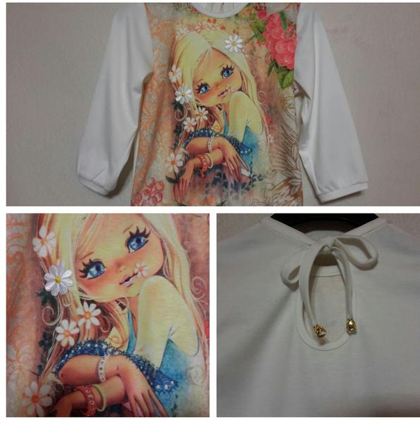 Приятная трикотажная кофточка со стразами ,аппликация "ромашки".