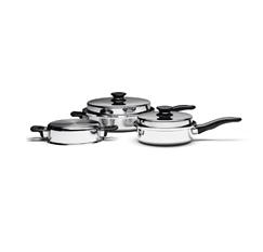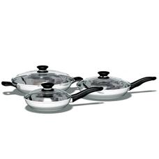 Артикул: 101083 Вес/ объем: 6 предметов Набор состоит из трех сковород диаметром 20, 25 и 30 см с легко моющимися крышками из огнеупорного стекла.Сковороды iCook с антипригарным покрытием - одни из самых прочных и надежных непригорающих сковородок в мире! Как и все сотейники и кастрюли iCook, сковороды изготовлены из нержавеющей стали 18/10 и имееют трехслойное дно OPTITEMP.