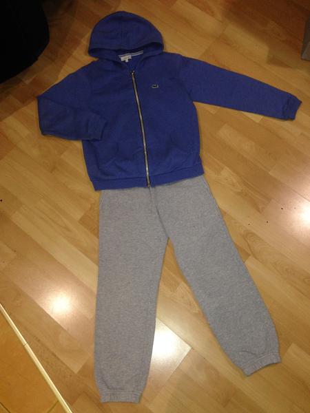 Кофта 10 лет, штаны 8 лет. На штанах малюсенькая дырочка была, естественно зашита. Покупали в Амстердаме дорого! Очень крутой, качество на высоте!