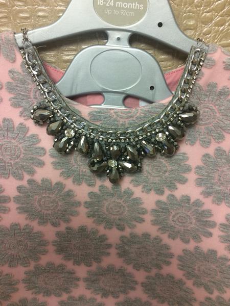 Платье одевалось один раз в театр(пристраивает подруга),платье у меня.Ткань неопрен,на ней выбит рисунок велюром,украшение одевается отдельно,можно под любое другое платье одеть.