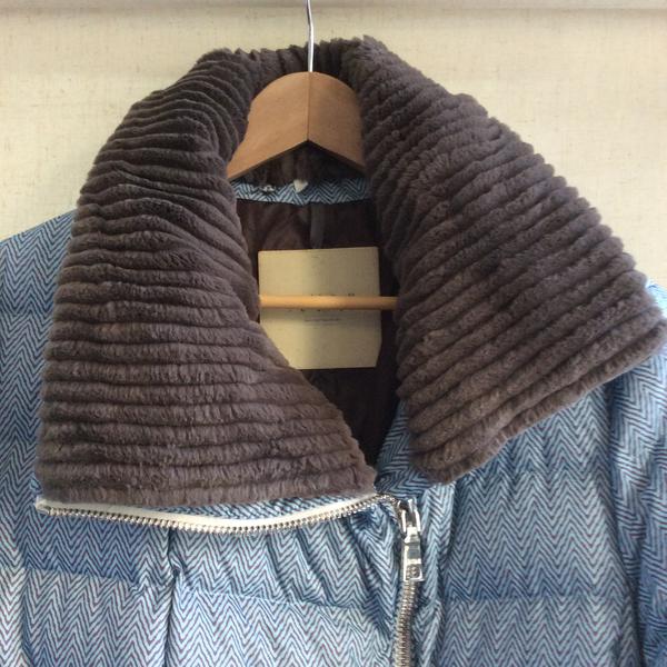 Воротник из стриженого меха кролика, отстёгивается. Пояс съемный. Карманы двойные (под молнией и под клапаном)