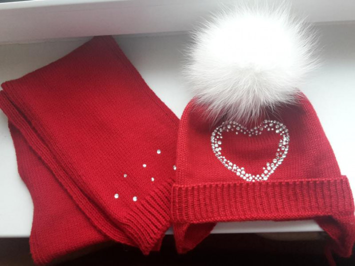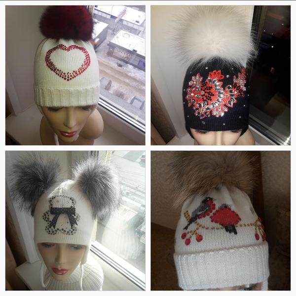 ДВ! Шапочка с мишкой из страз и 2мя помпонами?