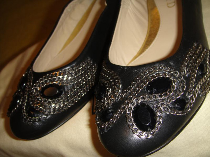 Новые балетки,черного цвета с камушками и цепочками. Натуральная кожа, внутри кожа,р.35 по стельке - 22,3см. Мягкие,легкие на любой подъем.Американская фирма Be&D