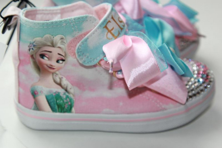 Кедики НМ "Эльза", для поклонниц мульта "Холодное сердце".Носочки украшены стразами с цветочками, вместо шнурков атласные ленты.24-й р-р. В размер.