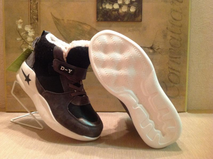 Литая, высокая, амортизирующая подошва. Верх комбинированный: кожа, замша, текстиль. Внутри утеплитель: шерсть/хлопок. Шнурки - резиночки, на любой подъем и ширину ножки; липучка.
