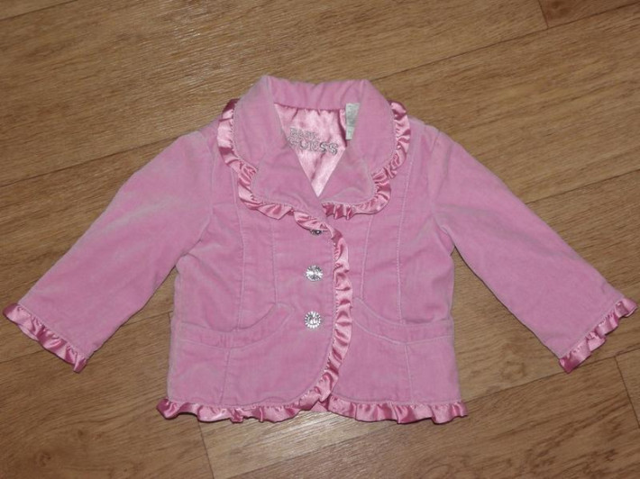Бутиковый тепленький Жакет GUESS, размер указан 12 мес.,можно носить до 18 мес.(см. замеры), бархат/атлас, в отличном состоянии