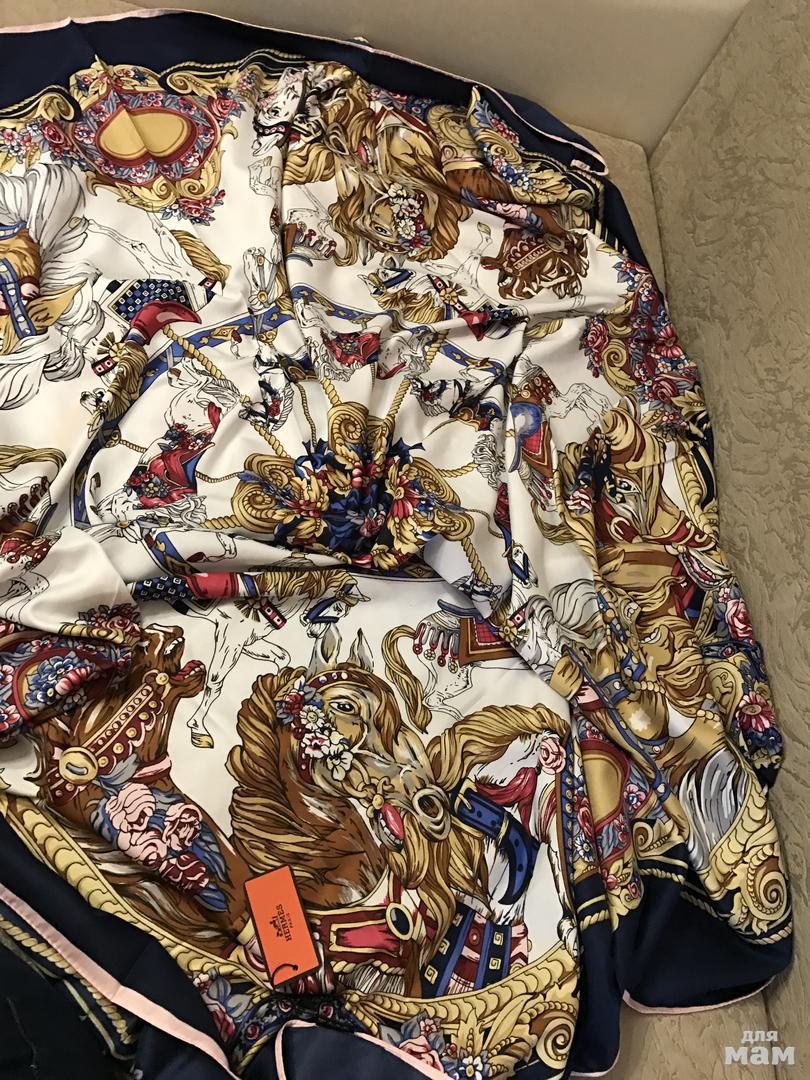 Hermes 100% шёлк ( они очень крутые!!!!) держишь в руках и чувствуешь качество! Размер 550 р лошадки в наличии 4 шт