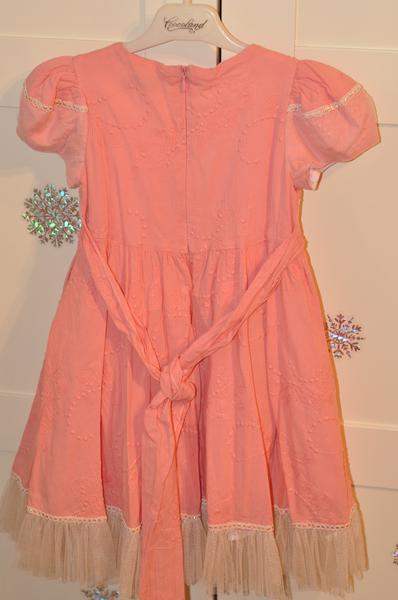 Платье очень красивое. Хлопок. На ребенке смотрится более наряднее и пышнее, фото не передает красоты платья. Платье на фото не отглаженно. Одевали 2 раза на утренник в д/саду. На этикетке стоит размер 4. На худенькой девочке и на рост 120 см хорошо будет. Фирма VIDay collection (Австралия). Качество супер! По всему платью идет вышивка в цвет платья, подол обрамляет мягкий золотистый фатин.