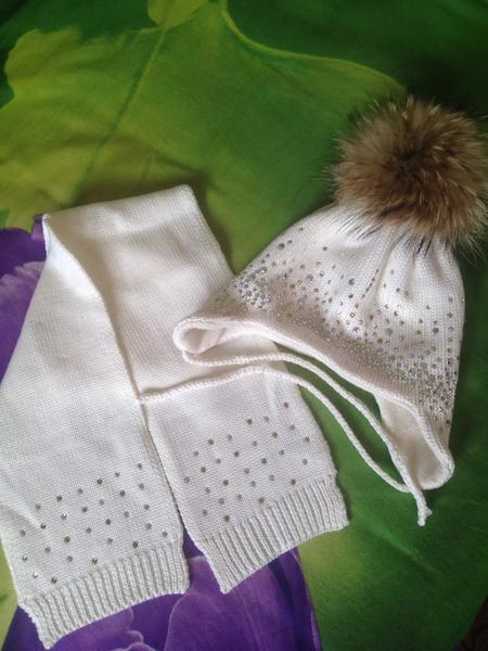 Пристрою безумно красивый комплект в состоянии нового( одели 2 раза ) р 50 - 52. ( на бирке 48-52) Шапочка двойная тёплая. Цвет экрю.