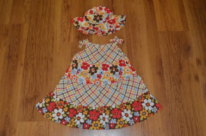 Сарафан+шляпка (CША) размер 3г., рост 91-100 см (по размерной сетке производителя), 100% хлопок. Шляпка на ОГ 51-52 см. с завязками на липучке. Новый.