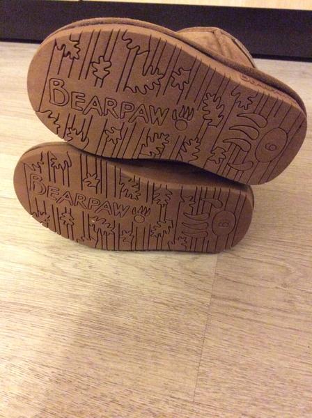 Продаю новые угг Bearpaw, привезли из штатов две пары, себе оставили поменьше)) размер US 6, длина подошвы 16 см, значит стелегка где-то 14-14,5 см. Совершенно новые, только разок дома примерили, но есть небольшой нюанс. На левом валеночки с тыльной стороны есть пятнышко небольшое(см фото)