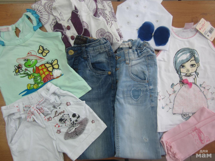 пакет2) майка Колабир,шорты с львенком и сразами, 2 джинс с утяжками на поясе, сарафан, майка новая, шапоччка новая , легги новые. Все вещи на размер 98/104 -1500 руб
