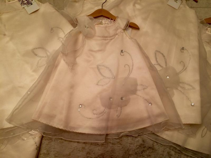 На атласе под вуалькой нанесен рисунок стразами и воздушные цветы.. очень эффектно смотрится . в живую глаз не оторвать.