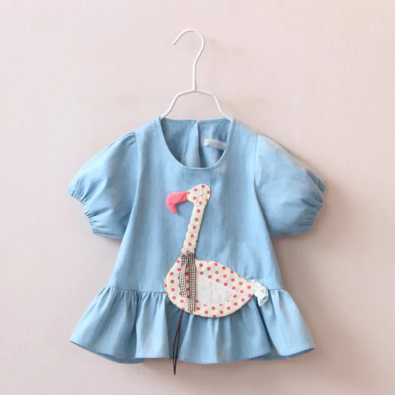 - джинсовый комбинезон с очаровательной аппликацией на груди и мелким цветочным рисунком
