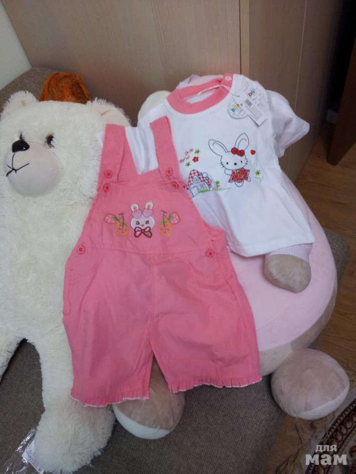 2. Новый комплект футболка/полукомбинезон Bony Kids коралловый - 86 размер- 400 рублей