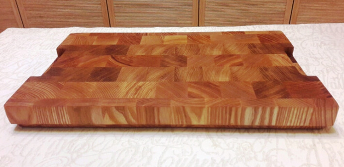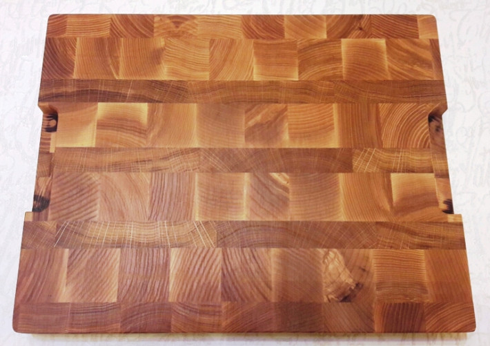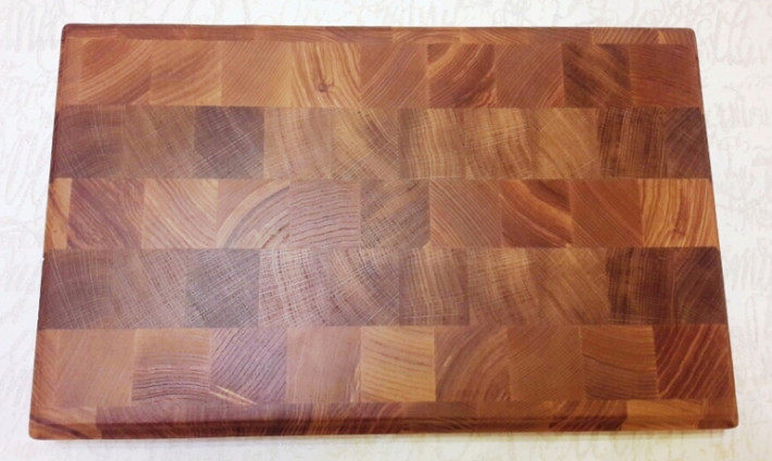 Обработка: Пчелиный воск, минеральное масло. Почему профессиональные повара выбирают именно торцевые разделочные доски? По той же причине они выбирают дорогие качественные ножи из хорошей стали. Они ценят свое время и инструмент своего творчества. Хорошие ножи помимо качества реза, гораздо дольше держат заточку, что экономит время и силы повара. То же делают и торцевые доски, позволяя ножу при резе проникать между волокон, а не перерезать их, тем самым продлевая срок службы. Эта технология позволяет беречь нож, силы и драгоценное время повара.