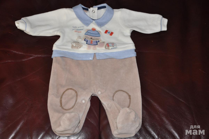 Продаю велюровый молочно-бежевый комбинезон итальянской фирмы Brums. Одевали два раза - состояние просто отличное!!! Очень хороший, нежный и качественный!!! Размер NB месяц.