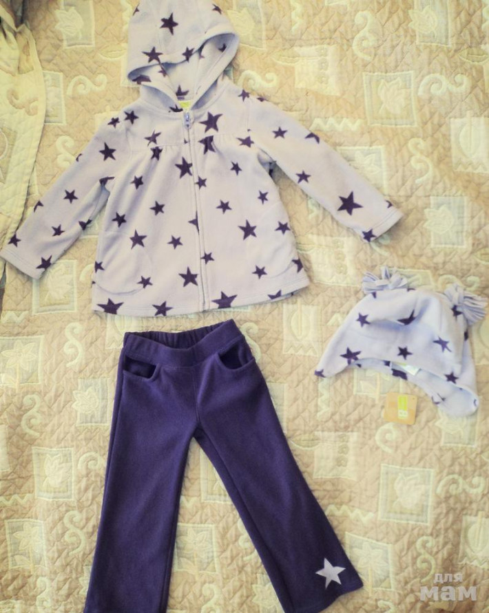Комплект Crazy8(США) размер 3T.Шапочка новая,с биркой,цвет сиреневый с фиолет.звездами.Штанишки одевали раза 3,цвет фиолетовый.Состояние идеальное.Кофту носили активно.