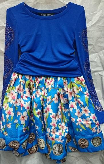 Комплект Angel Mind, юбка и кофта, маркировка 134-140, очень классный комплект, но на обладательниц тонкой талии(( кофта: длина от плеча 49 см, ПОГ 33 см (не растягивая), рукав внешний/внутренний 50/39 см, тоненький х/б трикотаж, юбка: длина 42 см, ПОТ 27/32 см(сзади пояс на резинке), сбоку молния.