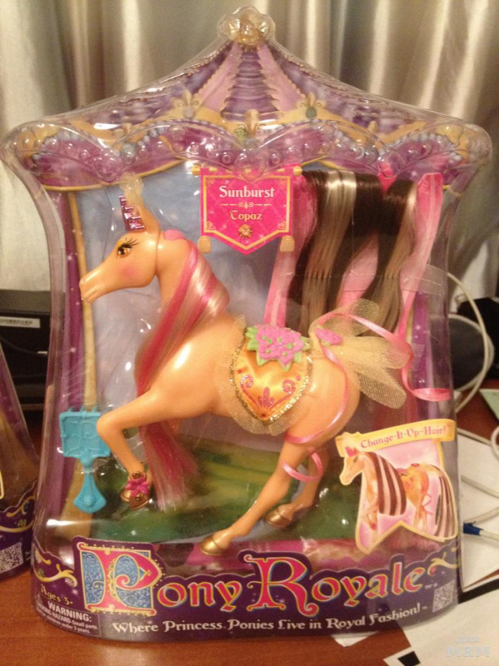 Моей очень нравятся, все аксессуары съемные, корона, седло, юбка, в комплекте сменная грива и хвост, расческа. Всего 12 лошадей, но в наличии 4 разных.От неск штук скидку сделаю)