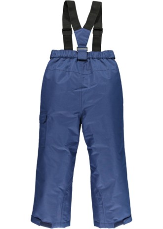Брюки-полукомбинезон еврозима фирмы Matalan. Ветронепроницаемая, водонепроницаемая дышащая ткань. Впереди на молнии и кнопке, регулируемые по длине лямки и талия. Проклеенные швы. Подкладка - подкладочная ткань, резинка на подкладке внизу штанины для облегания, от попадания снега, штрипок внизу нет. Можно уменьшить ширину штанины, есть липучка. Состав 100% полиамид. Машинная стирка при 40*. Цвет синий. Размер 3-5л (98-104), указан размер 4-5лет, по замерам меньше - длина по шаговому шву 38см