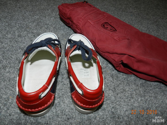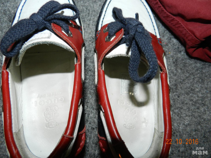 Gucci Ботинки 27 размер кожа на коже + штаны Gucci в придачу Маркировка 4 , но можно дольше нам и в 5 лет отлично они. Все оригинал. Ботинки в идеале носили мало и в помещении. У штанишек есть небольшой нюанс Выводили пятнышко и посветлела ткань в этом месте. На фото видно больше чем в есть в живую. Вспышка высвечивает. За все 4000.