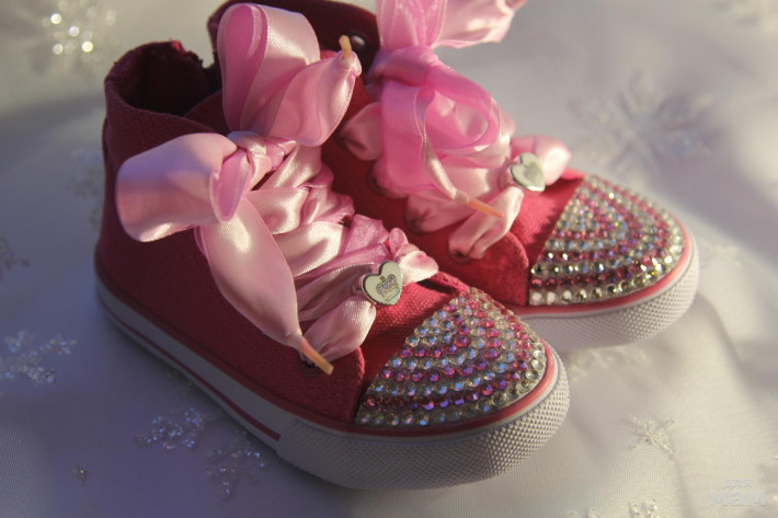 Кеды LaRedoute, с молнией. Р- р 22, по стельке 14 см. Стразы прозрачные и розовые. Шнурки из атласной ленты и органзы - 1пара.