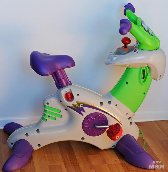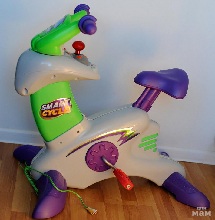 Если игрушку отключить от телевизора и выключить от питания, получается обычный детский велотренажер, на котором можно весело покрутить педали просто так.