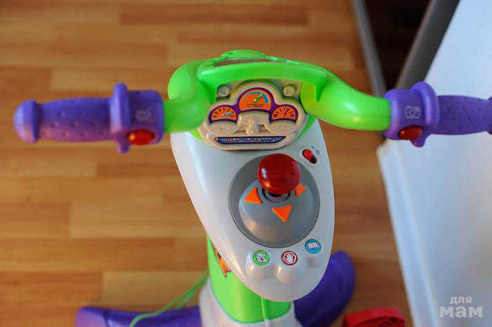 Для того, что бы играть в некоторые из игр типа гонок (Race) ребенку потребуется крутить педали, и чем быстрее, тем лучше. Так же есть игры, в которые придётся играть при помощи джойстика, который расположен на панели.