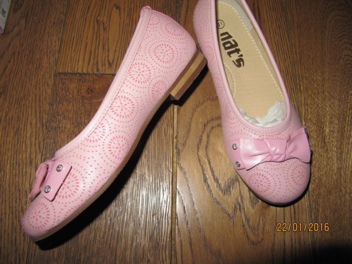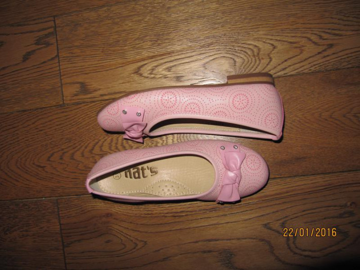 Мы переросли. Роскошные туфельки из кожи хорошего качества с декоративной лазерной насечкой, украшенные красивым бантом с диамантами по краям. Модель с закругленной формой мыска на тонкой подошве с маленьким каблучком, имеется анатомическая стелька с выраженным подсводником. Материал подкладки: натуральная кожа,подошва: ТЭП. Цена 1500 руб.+почта.