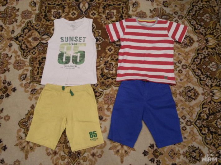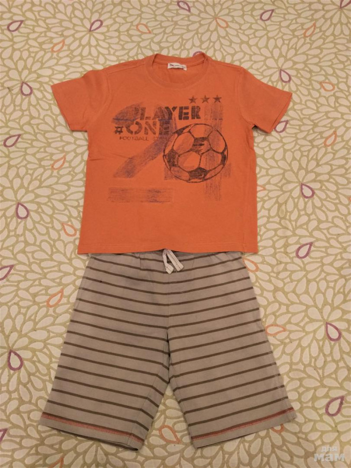 Справа: Футболка в полоску Mothercare, размер 134. Шорты есть выше с замерами. Цена 250р.